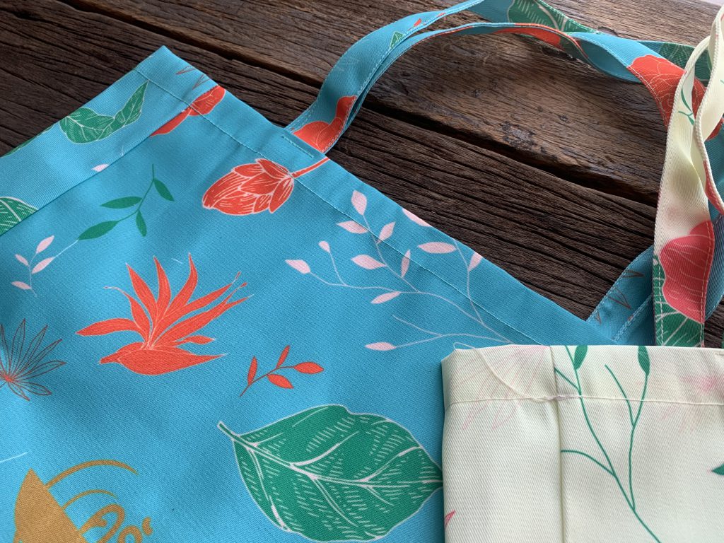 เราได้เลือกผ้าสำหรับทำกระเป๋าเป็นผ้าที่แข็งแรง การตัดเย็บที่ทนทาน และได้พิมพ์กราฟฟิกลงบนเนื้อผ้าสีสันสดใส ทั้งใบ มี 2 สี 2 แบบ เหมาะกับทุกโอกาส
